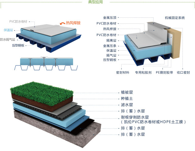 工業與民用建筑的外露式屋面防水。